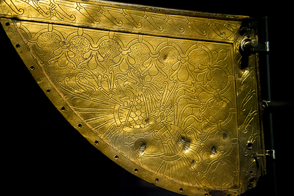 Dating to the same period, this openwork gilt copper vane is from the church at Söderala on the eastern coast of Sweden and discovered in 1916. Although less dramatic, it too has impact marks. The brass lion, which had become detached, was found next to the church, although its tail is missing.