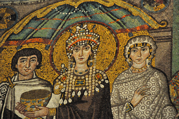 References: Procopius: The Secret History (1966) translated by G. A. Williamson (Penguin Classics). The mosaic of Theodora is in the apse of the church of San Vitale (Ravenna).