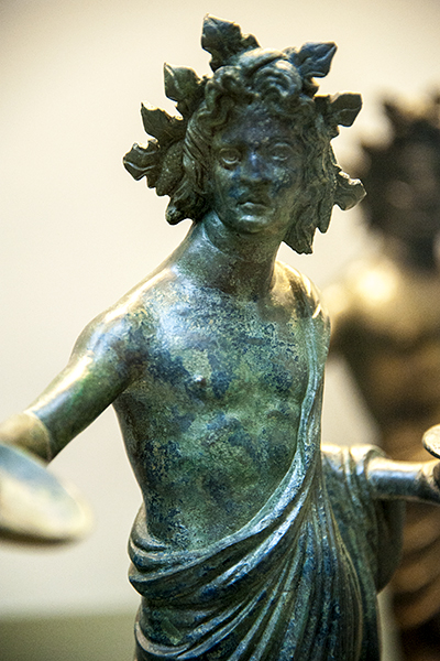 The bronze votive offering, a priest pouring a libation from a phiale, dates to about 150–100 BC and was one of several found near the Sanctuary of Diana at Lake Nemi.