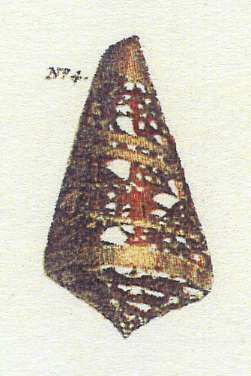"Thus far we followed the Author [Rumphius]; but since the most estimable Whelks are among the aforementioned Toots [Voluta] (as was said before), we could not neglect to show to the Collectors, the rarest ones, which the Author could not have known, and which are seldom found, all of them shown on Plate XXXIV....The one shown by the letter B, is called the Supreme Admiral, since it was, before the other became known, the foremost Whelk....its color is a yellowish brown, with flamed stripes that are browner, and that are intertwined, with white spots like hearts; [it] has four yellow bands around it, with fine white little spots, and it is toothed or topped all around its crown."