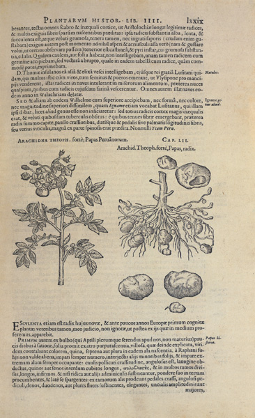 References: Ein Garten Eden (2001) by H. Walter Lack and translated by Martin Walters; Gerard's Herball (1927) edited by Marcus Woodward (a selected reprint of the 1636 edition); Herbals: Their Origin and Evolution (1953) by Agnes Arber. See also Potato: A History of the Propitious Esculent (2008) by John Reader.
