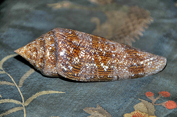 Too, although an attractive shell, gloriamaris is not exceptionally so, the intricate and delicate tented pattern subdued and sometimes marred by distinctive growth marks. Other cone shells, too, have shared its "glory," especially those with similarly high spires.