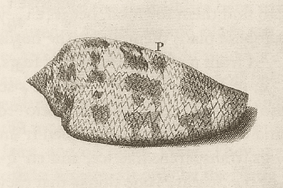 The illustration of C. textile (above) is from Plate XXXII, Figure P in the The Ambonese Curiosity Cabinet (C. omaria is Figure O). Rumphius inadvertently reversed the labels, however, mistakenly identifying the "Gold Cloth" (the shell still is known as the "Cloth of Gold") by the Letter O and the "Silver Cloth" by P. A half century later, Lennaeus classified Rumphius' Voluta pennata as C. textile (Systema Naturae, No. 278, p. 717), citing both figures as illustrative. C. omaria, in fact, is a distinct species, as Hwass recognized in 1792.