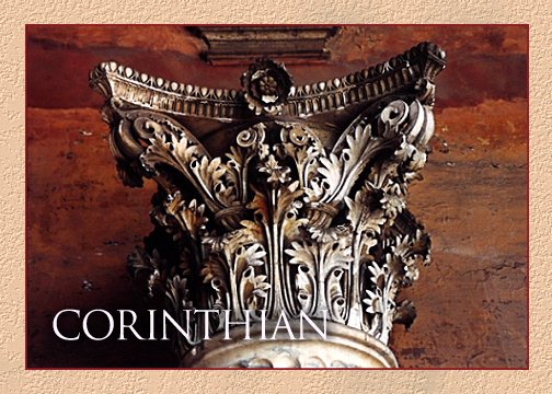 The most common Roman order, especially for temples, the Corinthian capital has two rows of acanthus leaves, with stalks sprouting to form spirals (volutes) at the angles. Surmounting the capital is a flat slab (abacus) with an acanthus flower in the center of each side. This beautifully preserved column is in the Museo Nazionale delle Terme.