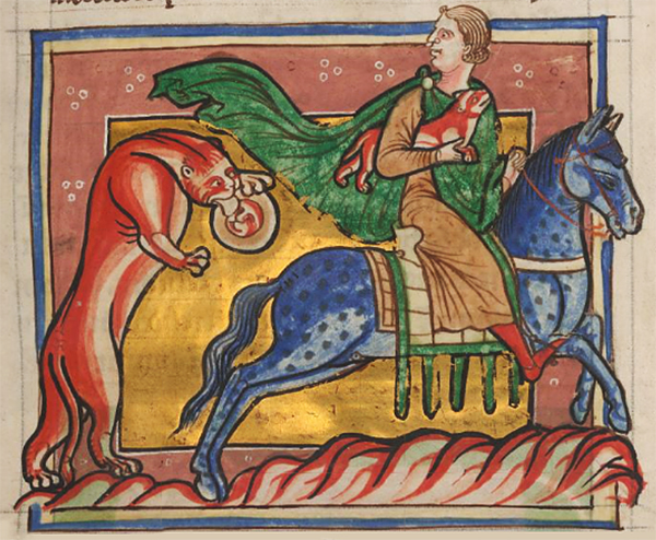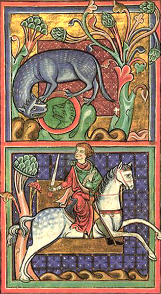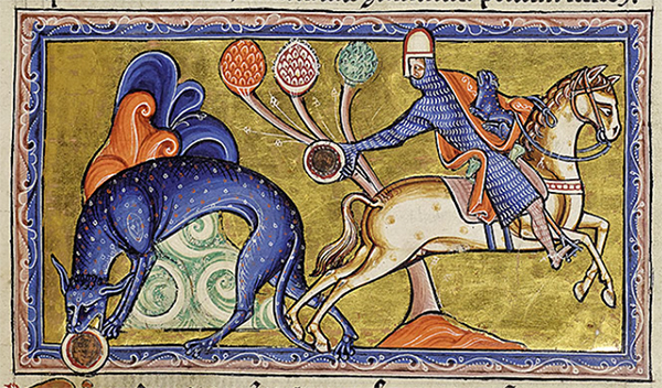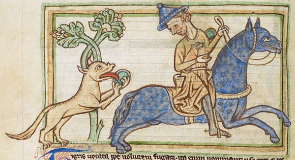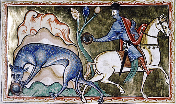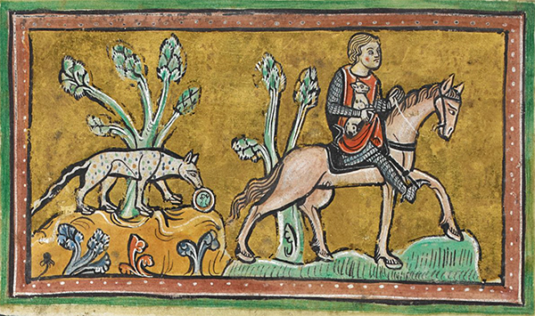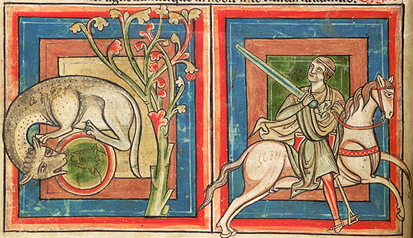 Humans are not often depicted in the medieval bestiary which, after all, is a book of beasts. But, when they are, the portrayal usually is not favorable. In stealing the tiger's cubs, the noblemen mounted on their stallions invariably are richly attired in flowing mantles or draped in costly chain mail, imagery that suggests the sin of pride (as the beguiling mirror does for the tiger herself). Their heads, too, often extend beyond the border of the frame, as if swollen with pride. And they invariably kill or otherwise maim the very creatures from which they were supposed to learn: the trapped antelope, its saw-like horns entangled in branches; the unicorn embraced in the lap of a maiden; the bonnacon emitting a defiant fart as it tries to flee; the beaver, "none more gentle," castrating itself to avoid being killed for its prized testicles—all are shown being pierced by a lance.