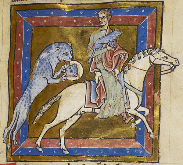 By late the following century, the story again has been retold. Now, instead of the cubs themselves having to be given up one-by-one, a simulacrum is used instead to deceive the pursuing mother. The ingenuous ruse (and its Christian moral) was introduced by Ambrose in about AD 389. Bishop of Milan, he had disputed with the pagan senator Symmachus on religious tolerance just a few years before.
