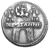"The senate on learning of his achievement gave him the title of Britannicus and granted him permission to celebrate a triumph. They voted also that there should be an annual festival to commemorate the event and that two triumphal arches should be erected, one in the city and the other in Gaul, because it was from that country that he had set sail when he crossed over to Britain."