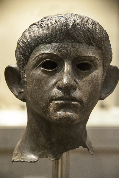 In 1907, a young boy found a bronze head of Claudius in a muddy river bed some miles northeast of Colchester, likely thrown into the river as a votive offering, Purchased by the landowner, it was exhibited eighteen months later by Sir Lawrence Alma-Tadema at a meeting of the Society of Antiquaries in London. Then, in 1979, another bronze fragment was discovered, this time a horse's hock. Given the low lead content of the bronze alloy and that both were hacked away (perhaps as booty), it is tempting to think that they were part of the same equestrian statue, although there is no certainty for such wistful association.