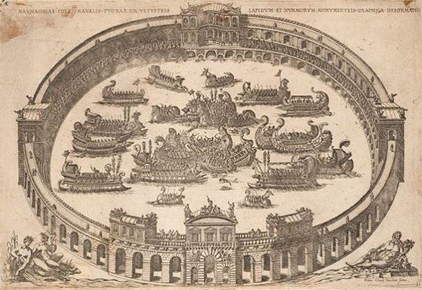 Martial, too, commemorates the display in what presumably is an eye-witness account, and certainly the image of the Colosseum arena being flooded is evocative. But, assuming that the spectacles occurred there and have not been confused with the naumachia Augusti, which would have taken too long to fill and likely never was drained, one wonders how it might have been accomplished.