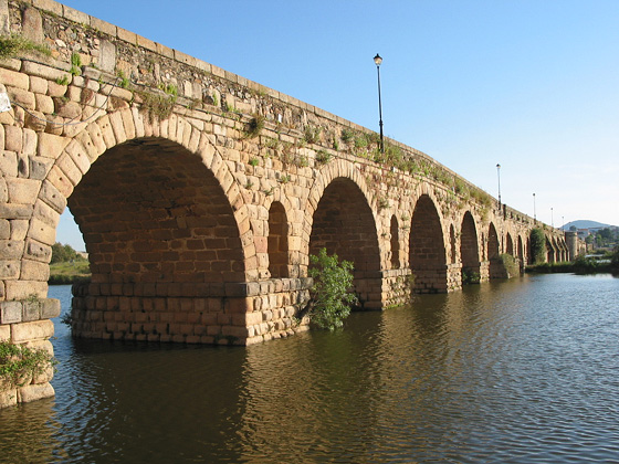 Crossing the river Guadiana at its highest navigable point, the bridge is the longest in Roman Hispania and one of the most picturesque. Constructed of granite under Trajan or, more likely, Augustus, its sixty arches span two forks of the river, including an island in midstream which had warehouses, shops, and wharfs. In 1993, the bridge was restored and turned into a pedestrian walkway.