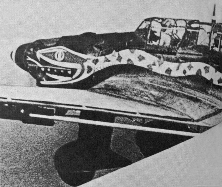 This image, published by Creek in 2012, shows a second (often overlooked) "Snake," a Ju 87B-2 designated (as indicated on the back of the photograph) T6+AP. Urbanke contends that such planes were flown by unit leaders, the elaborate decoration allowing for ready identification—and both T6+AN (5 Staffel, II Gruppe) and T6+AP (6 Staffel, II Gruppe) do have "A" as their individual identification letter, which was reserved for Staffelkapitäns and Gruppenkommandeurs. For example, T6+AC was flown by Major Walter Enneccerus, who severely damaged the British aircraft carrier HMS Illustrious in January 1941. Urbanke also assumes that, if the snake were to provide such immediate recognition, it must have appeared on both sides of the aircraft—although this seems does not seem practical.