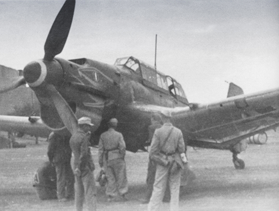 References: Stuka: Luftwaffe Ju 87 Dive Bomber Units, 1939-1945 (Vol. 2) (2006) by Peter C. Smith (p. 116); Luftwaffe Camouflage and Markings 1935-1945 (Vol. 2) (2005) by K. A. Merrick and Jürgen Kiroff (p. 324); "Die 'Schlangen'—Stukas des Sturzkampf Geschwader 2: The 'Snake' Stukas of Sturzkampf Geschwader 2 (2005) by Axel Urbanke, Luftwaffe im Focus, Edition 7, 24-27; The Luftwaffe in the North African Campaign 1941-1943 (1992) by Werner Held and Ernst Obermaier (a translation of Die Deutsche Luftwaffe im Afrika-Feldzug 1941–1943, published in 1979);World War II in Pictures (Vol. 1) (1942) edited by Herman C. Morris and Harry B. Henderson (p. 228); Junkers Ju 87 Stuka (2000) by Alan W. Hall (Warpaint Series No. 3, p. 29); Junkers Ju 87 Stukageschwader of North Africa and the Mediterranean (1998) by John Weal (Osprey Combat Aircraft 6, p. 58); The Junkers Ju 87A & B (1966) by J. Richard Smith (Profile Publications, No. 76, p. 5); Junkers Ju 87: From Dive-Bomber to Tank-Buster 1935–1945 (2012) by Eddie J. Creek (pp. 168, 174).