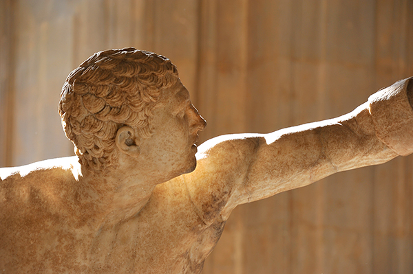 This statue of a warrior is signed by the first-century BC sculptor, Agasias of Ephesus. First recorded in 1611, just after it had been found, it was in the Borghese villa by 1613, where it was regarded as the most admired work of antiquity in the collection. Indeed, so many casts were taken that further copies were prohibited. In 1807, it and most of the other Borghese antiquities were purchased by Napoleon, whose sister was married to Prince Camillo Borghese.