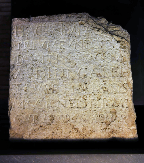 "From here pass the conduits of three aqueducts [Aqua Marcia, Aqua Tepula, Aqua Julia]. The cippi were placed by Aulus Didius Gallus, Titus Rubrius Nepos and Marcus Cornelius Firmus, managers of the aqueducts and the water supply."The cippus was a boundary stone that demarcated the routes of private roads and the distances of public ones—which, because each marker was progressively numbered, effectively served as a milestone. Cippi also delimited the sacred boundary of Rome (pomerium) and the banks of the Tiber, as well as marking the course of an aqueduct and separating its space from public or private land, which was to be left clear of development. Introduced by Augustus, the disposition of cippi was overseen by the curator aquarum, who maintained the aqueducts to ensure a sufficient supply of water to Rome, although concessions for private consumption were the prerogative of the emperor (Frontinus, The Aqueducts of Rome, LXXVIII.2).