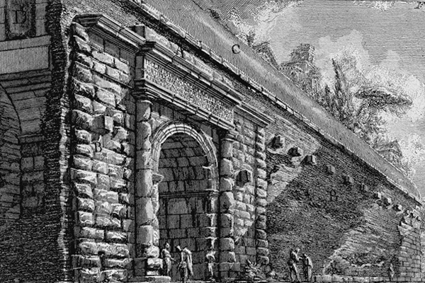 This etching of the Condotto dell'acqua Vergine is from Piranesi's Antichita Romane (1756) and shows the arch as it appeared in the eighteenth-century.