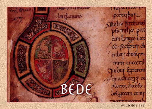The illustration is a detail from the opening page of Bede's Historia Ecclesiastica, Tiberius C.ii.
