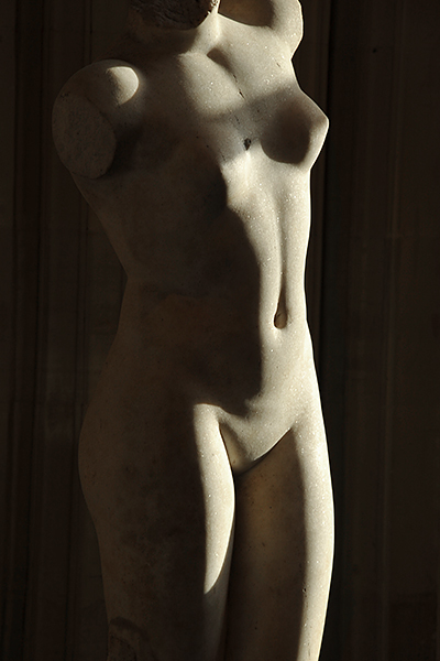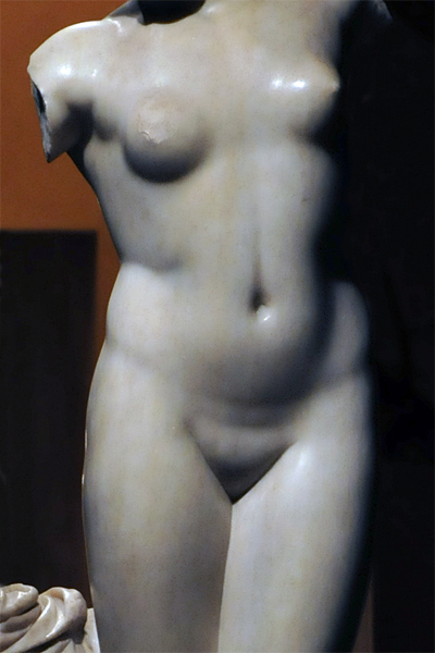 The detail above is the Esquiline Venus, which is in the Palazzo dei Conservatori (Rome). Its counterpart below, illuminated by the early morning sun, is identified only as torse d'Aprodite and in the Louvre (Paris).
