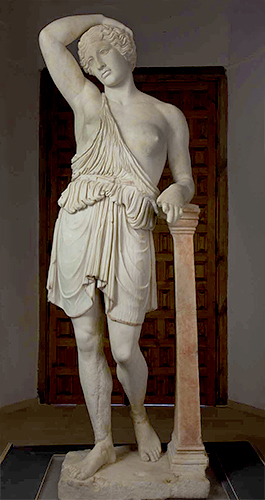 From left to right, the statues are from the websites of the Metropolitan Museum of Art, Pergamon Museum, Ny Carlsberg Glyptotek, and Museo Histórico Municipal de Écija (Spain)—the last discovered in 2002 and, as can be seen on the front of the pillar, retaining more of its original color.