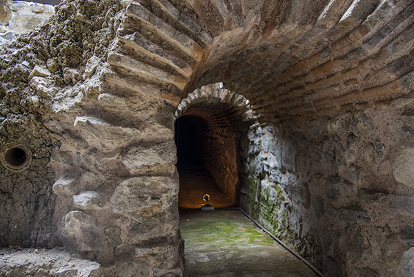 At the southern end of the Hippodrome, where the land begins to slope down to the sea, a series of massive vaults were constructed to serve as a retaining wall for the Sphendone, the curved section of the race track where it begins to turn back toward the starting gates. In 1927, a British expedition led by Stanley Casson spent four months excavating and studying the Hippodrome, and the foundation of the Sphendone in particular. Behind the twenty-five supporting arches (some still visible, above) were found a corresponding number of concentric chambers opening out onto a main corridor. Eventually, these arches were bricked up and a series of buttresses added. Sometime later, the chambers themselves were closed off and converted to a cistern.