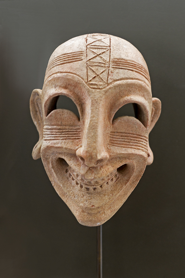 This grinning terracotta funerary mask dates to the early sixth-century BC and was laid in the grave as an apotropaic talisman to ward off evil spirits and give peace (and perhaps some joy) to the deceased.
