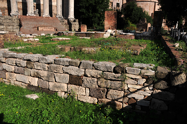 The curious trapezoidal shape was an attempt to maintain the building's east-west orientation and still fit behind the Temple of Divine Julius. The name, itself, suggests an ancient connection with the kings of Rome and, in honor of its antiquity, subsequent rebuilding conformed to the original design. There were restorations in 210 BC and 148 BC, and by Cnaeus Domitius Calvinus in 36 BC from the spoils of his victory in Spain that year (Dio, XLVIII.42.4-6). It may have been then that Calvinus decorated the outside walls with lists of the consuls and triumphators from Romulus to Augustus (fasti consulares et triumphales) that were found nearby and now are in the Palazzo dei Conservatori. Splendidly adorned, including statues borrowed from Caesar which, when they were not returned, were offered instead as votive offerings, the thick marble walls possibly protected against the fires of AD 64 and AD 191. The House of the Vestals was destroyed in the fire of Nero (Tacitus, Annals, XV.41, which also says that the Regia was lost). When the Atrium Vestae was rebuilt, its cardinal alignment with the Temple of Vesta and the Regia was disregarded.