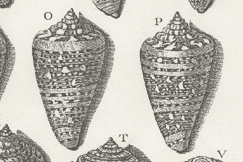 A bibliographic note: In 1758, in the tenth edition of the Systema Naturae, Carl Linnaeus sought to enumerate and describe every plant and animal known to him, each to be uniquely identified by two latinized words (its binomen), the first indicating the genus to which the organism belonged, the second, the species. But as revolutionary as this system of binomial nomenclature was in classifying species, it had not been practical for Linnaeus to illustrate his work. Instead, shell collectors in the eighteenth-century had to depend on others, such as Seba or Regenfuss, whose work also appeared that year, or d'Argenville and Knorr, who had published the year before.