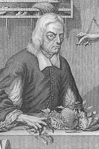 Georg Everhard Rumpf (Latinized as Georgius Everhardus Rumphius) was born in Germany (likely in late 1627), during the devastating Thirty Years' War. On the day after Christmas in 1652, he sailed on a six-months' voyage to Java as a soldier in the employ of the Dutch East India Company (VOC) and eventually to the island of Ambon in the Moluccas (Spice Islands), where the Dutch had established a trading post. Arriving at the beginning of 1654, he was to live there for the rest of his life. By 1660, he had been promoted to "merchant" with an elegant house and a ship manned by forty rowers at his disposal. Such princely amenities allowed him (with the tacit support of the VOC) to begin in earnest his study of Ambon's plants (certainly by 1663, when he asked permission that books and instruments be sent on to him on company ships), as well as those of neighboring islands. Initially written in Latin to ensure its scientific respectability, The Ambonese Herbal (Herbarium Amboinense) would be his life's work, a compendium of more than twelve-hundred different species and almost seven-hundred illustrative plates.