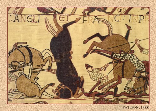 "When the Normans saw the English flying they pursued them relentlessly through the whole night till Sunday, to their own harm. For by chance long grasses concealed an ancient rampart, and as the Normans came galloping up they fell, one on top of the other, in a struggling mass of horses and arms."