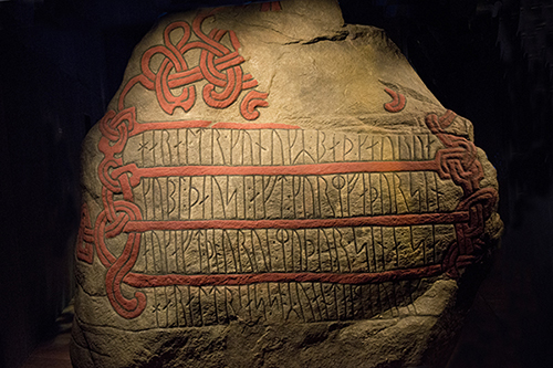 Erected by King Harald Gormsson (nicknamed "Bluetooth" because of a dead tooth) in about AD 965 (when he became a Christian or possibly twenty years later, when he died), the Jelling stone commemorates his parents. It also established the decoration of runic memorials in Denmark and subsequently all of Scandinavia. After mentioning his father and mother, the inscription says "[he was] that Harald who won for himself all of Denmark and Norway and made the Danes Christian," the first mention of Denmark in that country. The name itself, however, had been used some seventy-five years earlier (in about AD 890) by Ohthere (Norwegian Ottar) in an account of his travels purportedly related to Alfred, king of Wessex. It is preserved in an interpolation to an Old English translation of Orosius' Seven Books Against the Pagans and provides the earliest written record for some parts of Northern Europe (I.16-22).