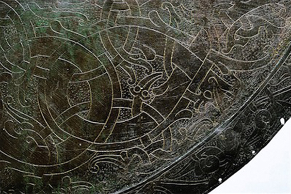Here, the reverse sides of the Heggen and Söderala vanes are shown in more detail. Together with the Källunge vane, they all are examples of the Ringerike style of ornamentation: a lion and serpent entwined in tendrils. Wilson considers the Källunge vane to be earliest of its type, "the lion and snake motif in its purest Ringerike form" (p. 136), whereas the Söderala vane is "a slightly more developed expression of the same design" and the Heggen vane, "a high point in the surviving art of the Ringerike style." Campbell, on the other hand, considers the Söderala vane to be "the most stylistically advanced version of the 'Great Beast' motif of these three vanes" (p. 126) and dismisses Wilson's claim that it is "over-fussy to modern eyes, even degenerate" (p. 138).