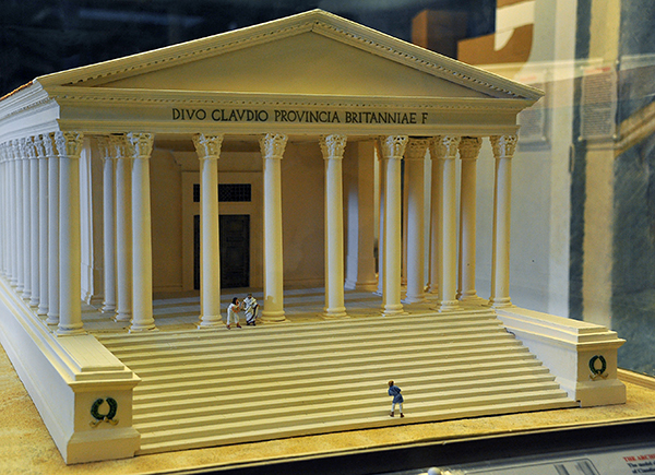 The model of the Temple of Claudius is in the Colchester Castle Museum, the bust of Claudius is in the British Museum.