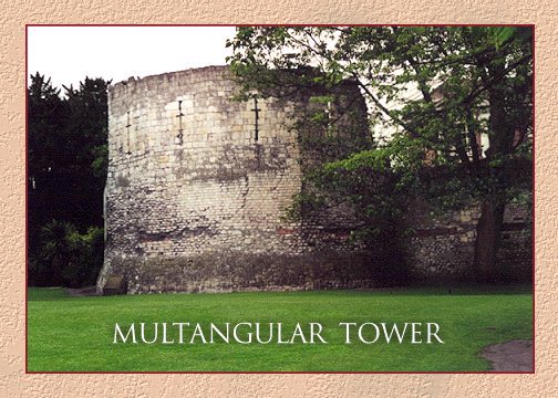 The ten-sided Multangular Tower, which stands at the western corner of the fortress, was built early in the fourth century, probably by Constantine I (the Great) (the upper stonework is medieval).